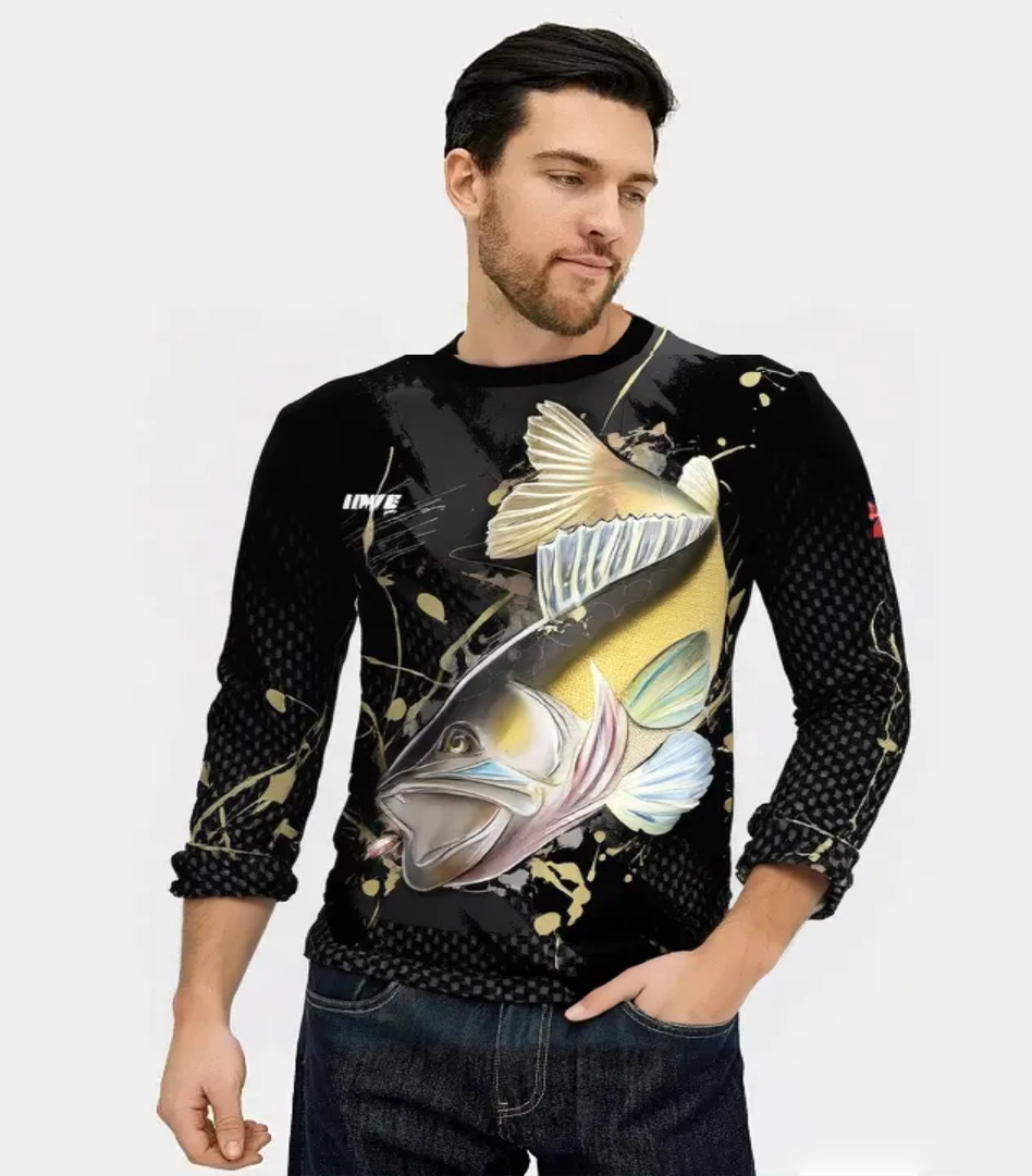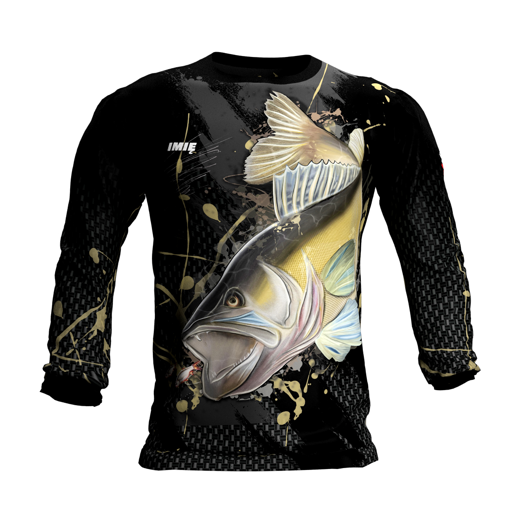 Koszulka z motywem sandacza, który nadaje jej unikalnego charakteru. Dzięki zastosowaniu poliestru możliwy jest nadruk fullprint, co pozwala na wyraziste i trwałe wzory. Koszulka oferuje także ochronę UV, skutecznie zabezpieczając skórę przed szkodliwym działaniem promieni słonecznych.
