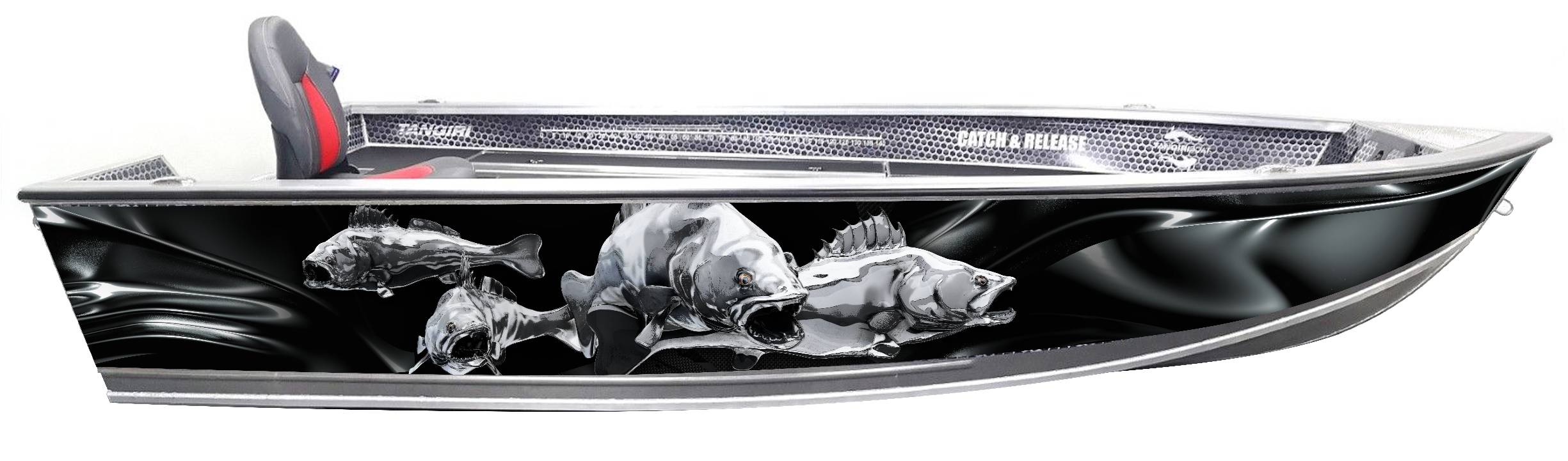 Okleina na łódkę z grafiką pt. Metal Zed Zabezpieczona laminatem. Przenieś swoją łódź na nowy poziom z naszą personalizowaną okleiną łodzi z wędkarską grafiką 3D przedstawiającą sandacze w olśniewającej, metalicznej teksturze! Nie tylko drukujemy folię, ale oferujemy także profesjonalne oklejanie łódek, dopasowane do każdego modelu. Stosujemy najwyższej jakości folię 3M z laminatem ochronnym UV, gwarantującą trwałość i odporność na warunki atmosferyczne. Twoje projekty graficzne na łodzie wędkarskie zyskają życie – wyróżnij się na wodzie!